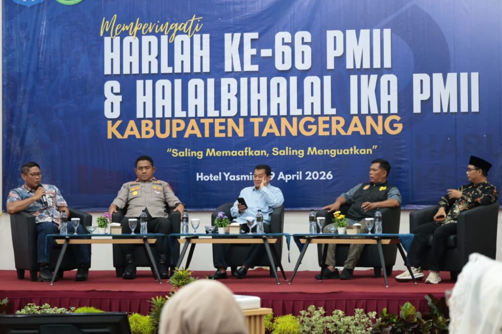 Tangerang,– Bupati Tangerang Moch. Maesyal Rasyid menghadiri acara Halal Bihalal yang dirangkaikan dengan peringatan Hari Lahir (Harlah) ke-66 Pergerakan Mahasiswa Islam Indonesia (PMII) yang digelar di Yasmin Hotel, pada Minggu (19/4/26).