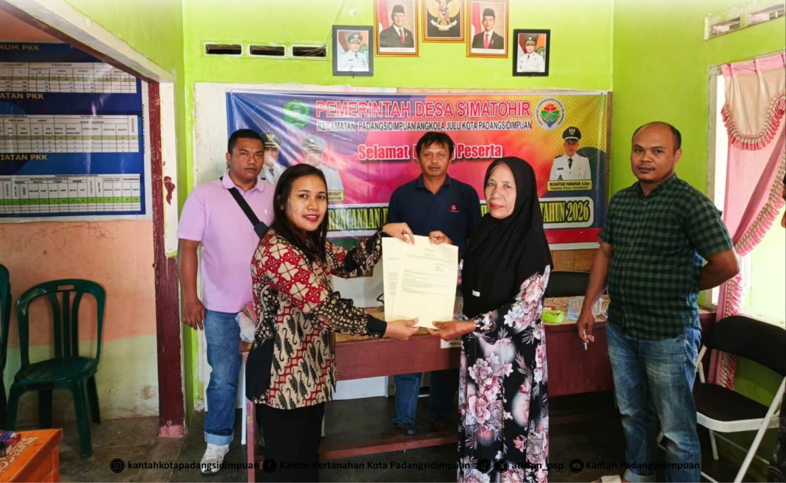 Padangsidimpuan SUMUT– BidikRealita.Com – Kantor Pertanahan (BPN) Kota Padangsidimpuan terus mengakselerasi perlindungan hukum hak atas tanah masyarakat melalui Program Strategis Nasional (PSN). Kepala BPN Kota Padangsidimpuan, Agustina Harahap, S.H., menyerahkan langsung 7 sertipikat hasil program Pendaftaran Tanah Sistematis Lengkap (PTSL) kepada warga Desa Simatohir, Kecamatan Padangsidimpuan Angkola Julu, Jumat (6/2/2026).